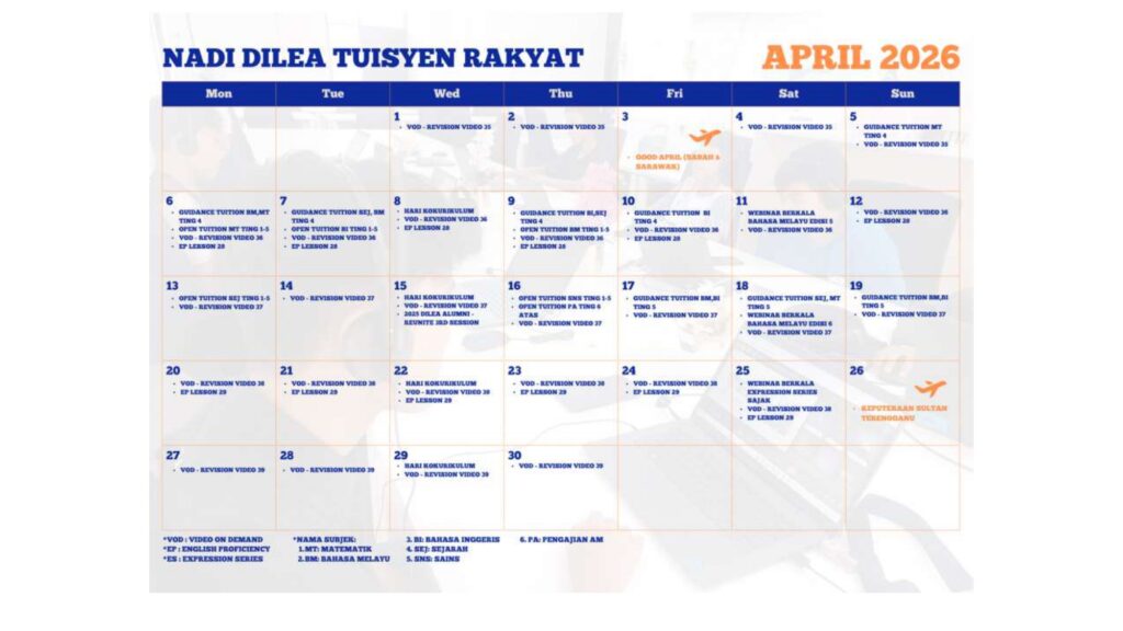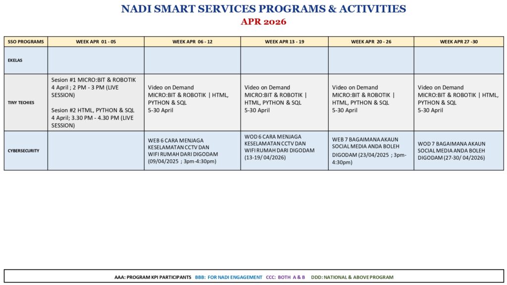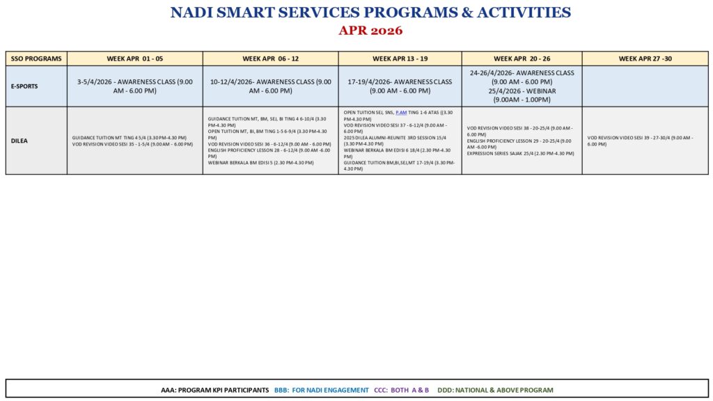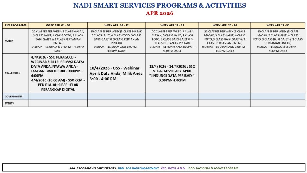 Takwim Perkhidmatan Pintar April 2026